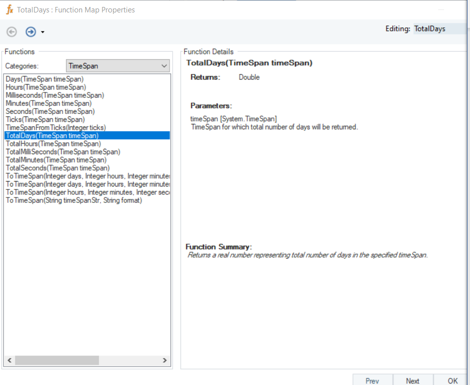 Returns a real number representing the total number of days in the specified timespan.