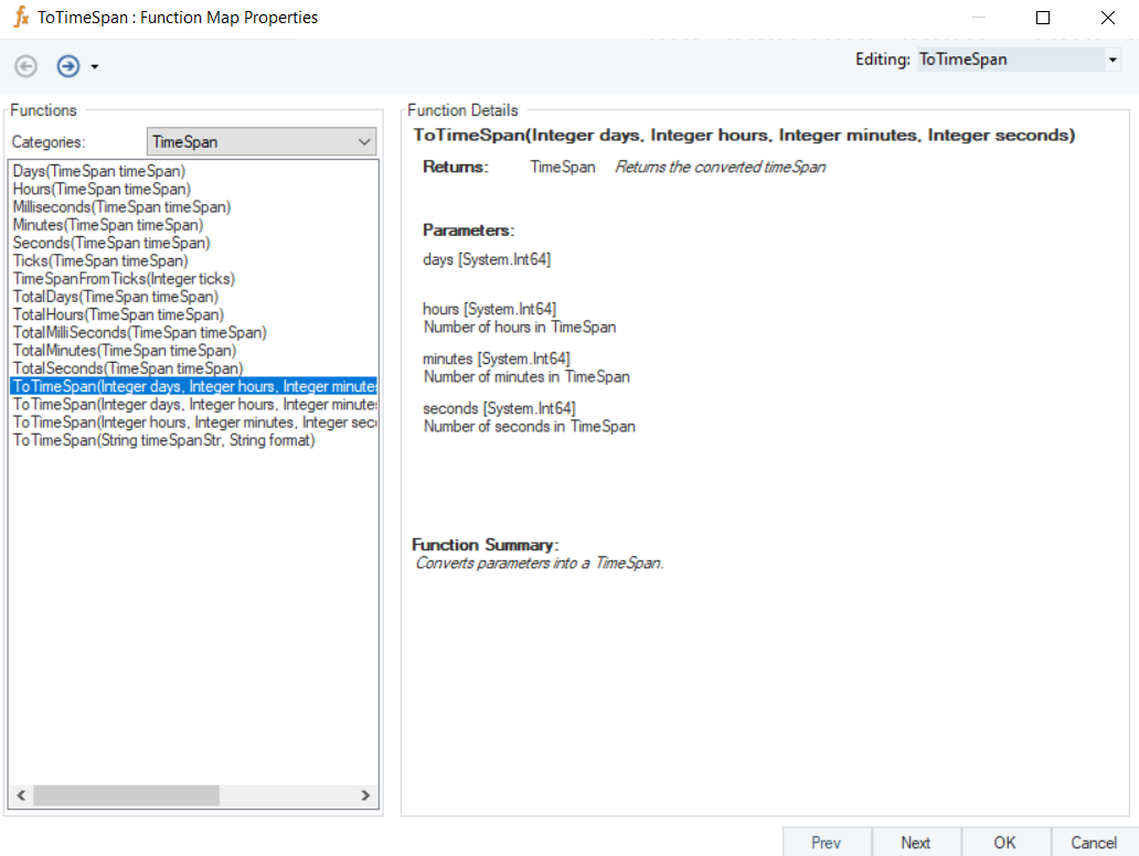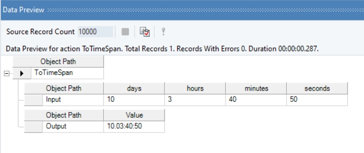 In the output window, you can see that the integer values have been converted into a TimeSpan value.