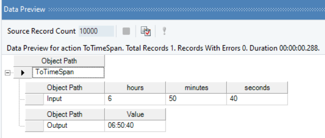In the output window, you can see that the integer values have been converted into a TimeSpan value.