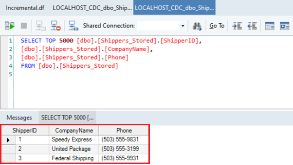 To check if the incremental CDC is working, let’s take an example where a fourth entry is inserted in the source table.