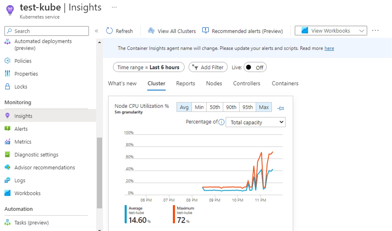 On the Kubernetes service overview page, select Monitoring - Insights.
