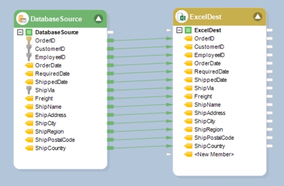 In this example, we will use the Orders dataset from Database Table Source and write it to an Excel Workbook Destination.