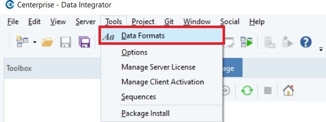 An alternate way of opening the Data Formats window is to select Tools > Data Formats:
