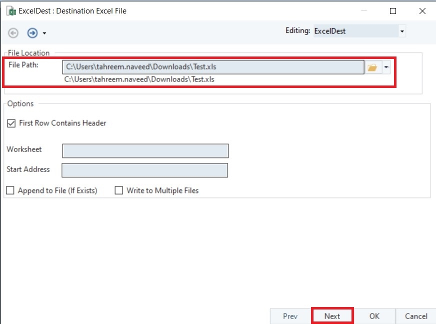 Similar to what we did in the previous example, we’ll use the Orders dataset from Database Table Source and write it to an Excel Workbook Destination.