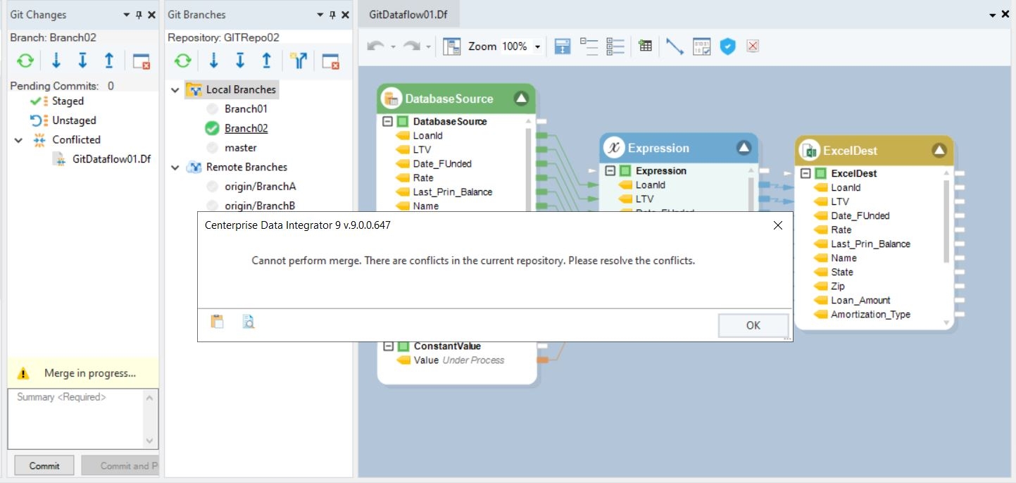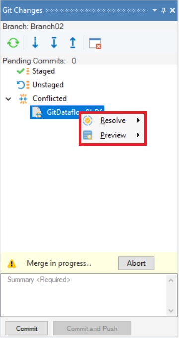 Resolving a Conflict in Git in Astera