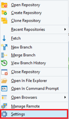 Configure the remote settings from the Git option on the main toolbar and select Settings from the drop-down menu.
