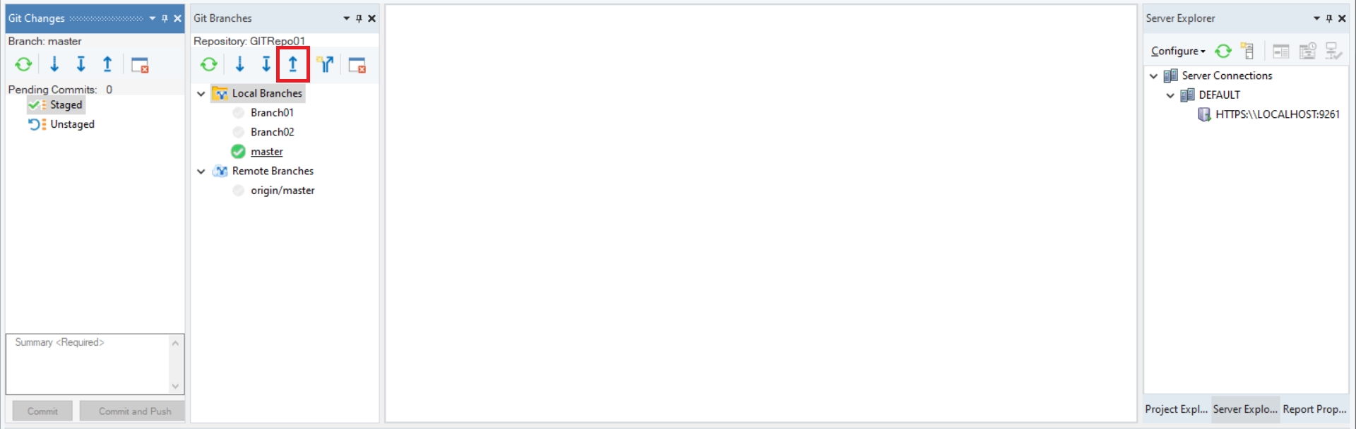 To sync a local repository to the remote server, select the Push option present in the Git Branches Browser of the Astera client.