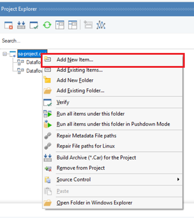 The Shared Action file has been saved. To add it to the project, right-click on your project in the Project Explorer and select Add Existing Items.