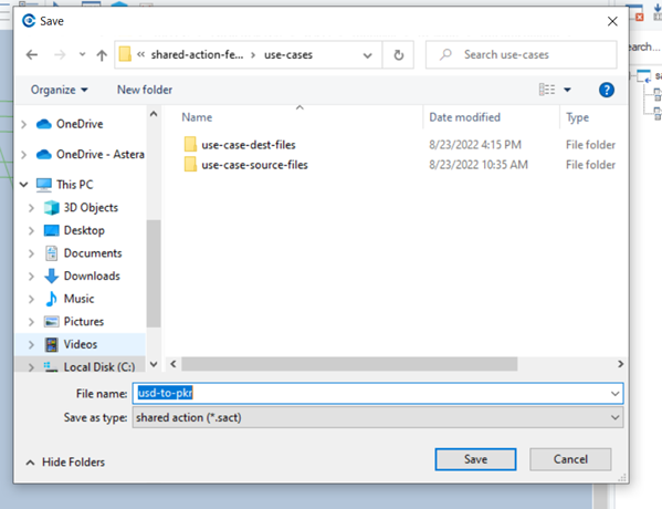 Select a destination where you want to save the Shared Action file and provide a file name. Click Save.