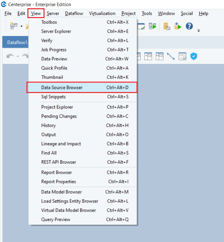 1. Click View>Data Source Browser.