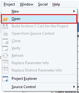 Now, open the project that you want to deploy on Astera’s Server by going to Project > Open and direct it to the .cprj file. This will open the selected project in the Project Explorer panel.