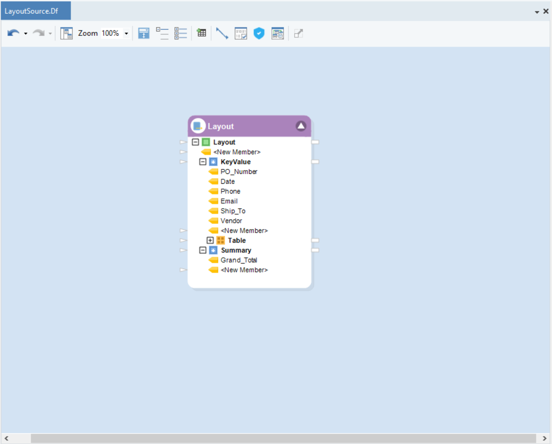 Provide the wizard with the layout of the data that you want to extract from these source files. This can be done via either importing a layout defined object from a dataflow or importing a layout from a JSON.