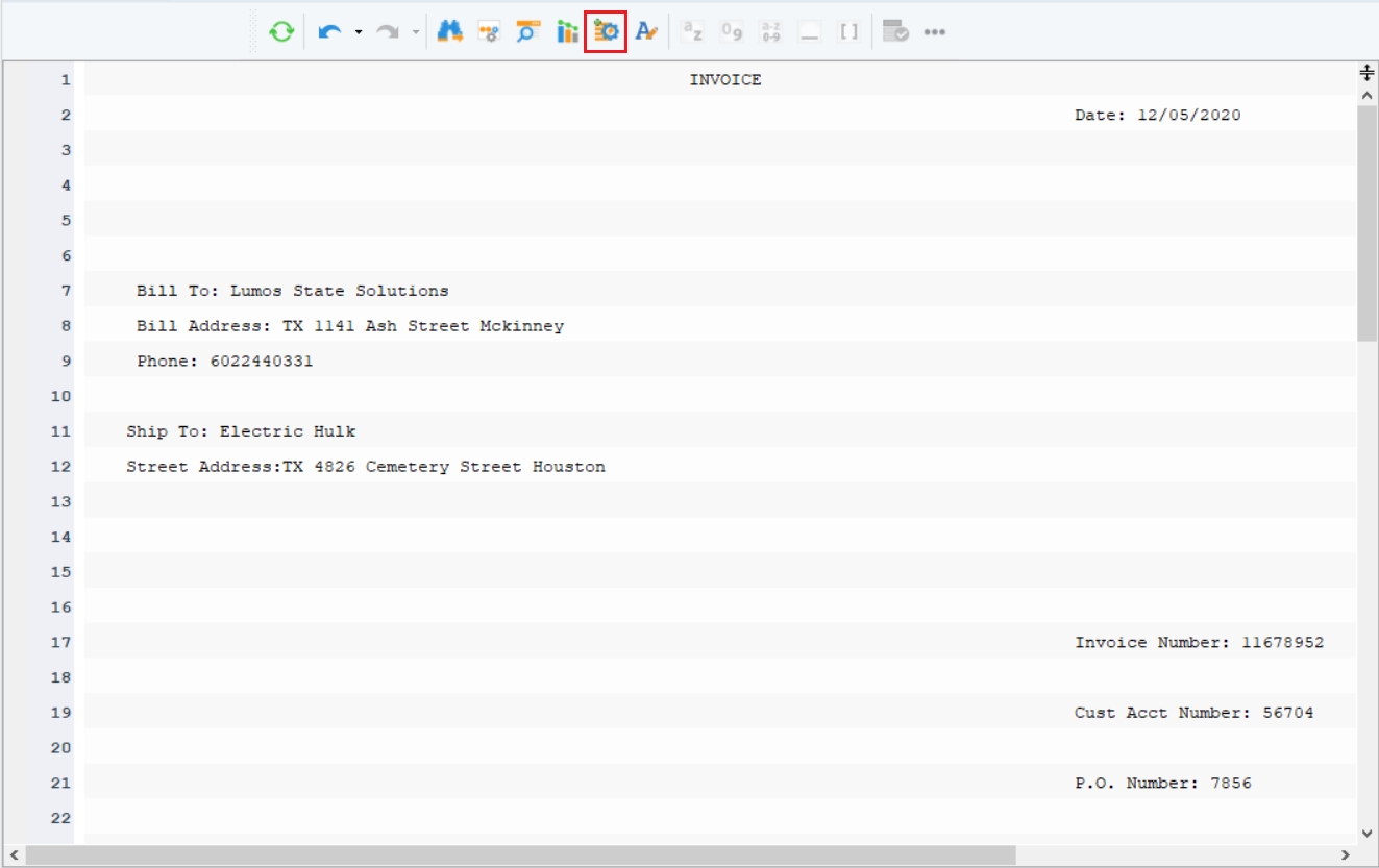 In this case, we have a PDF invoice for Lumos State Solutions opened in a report model.