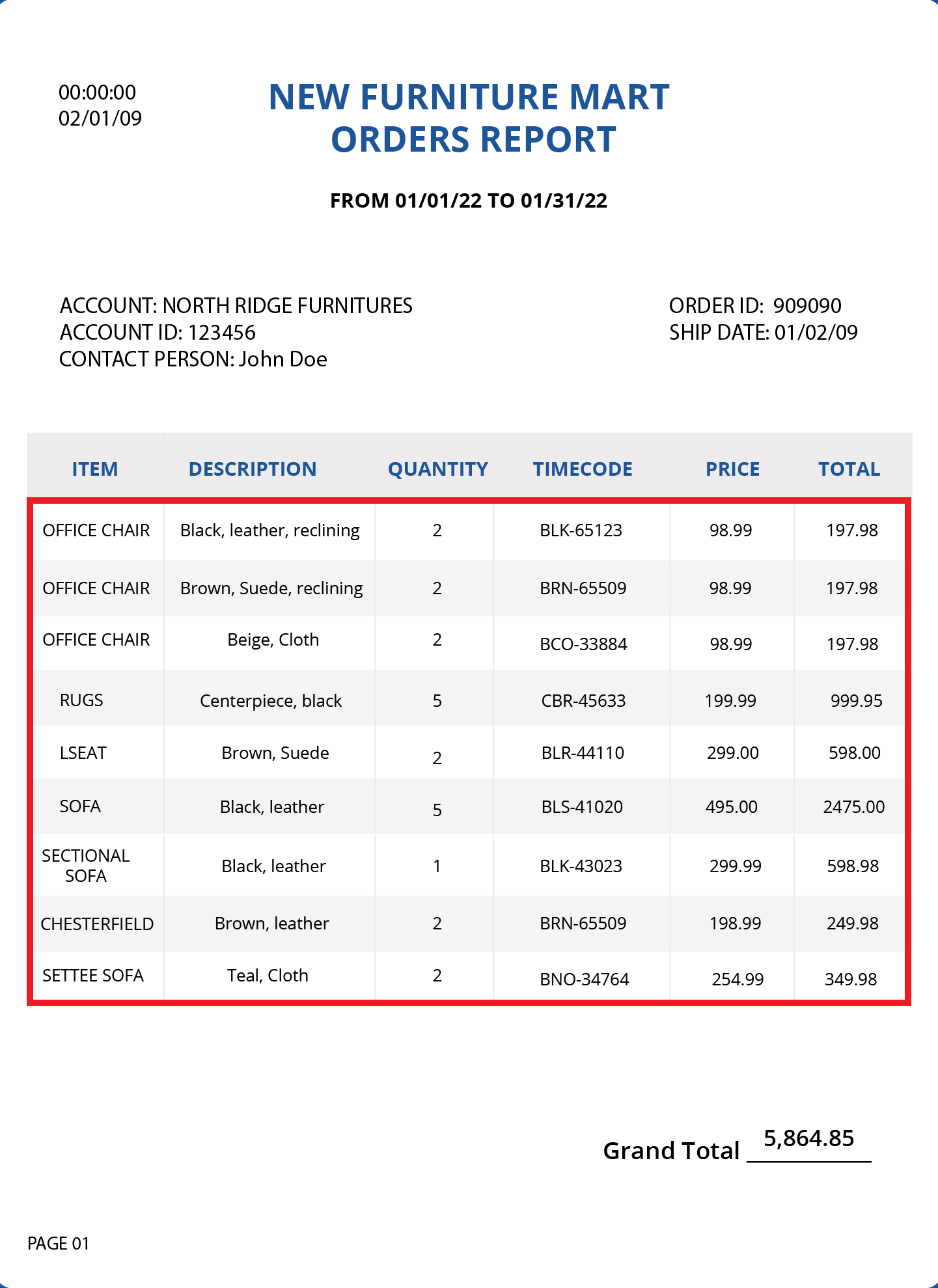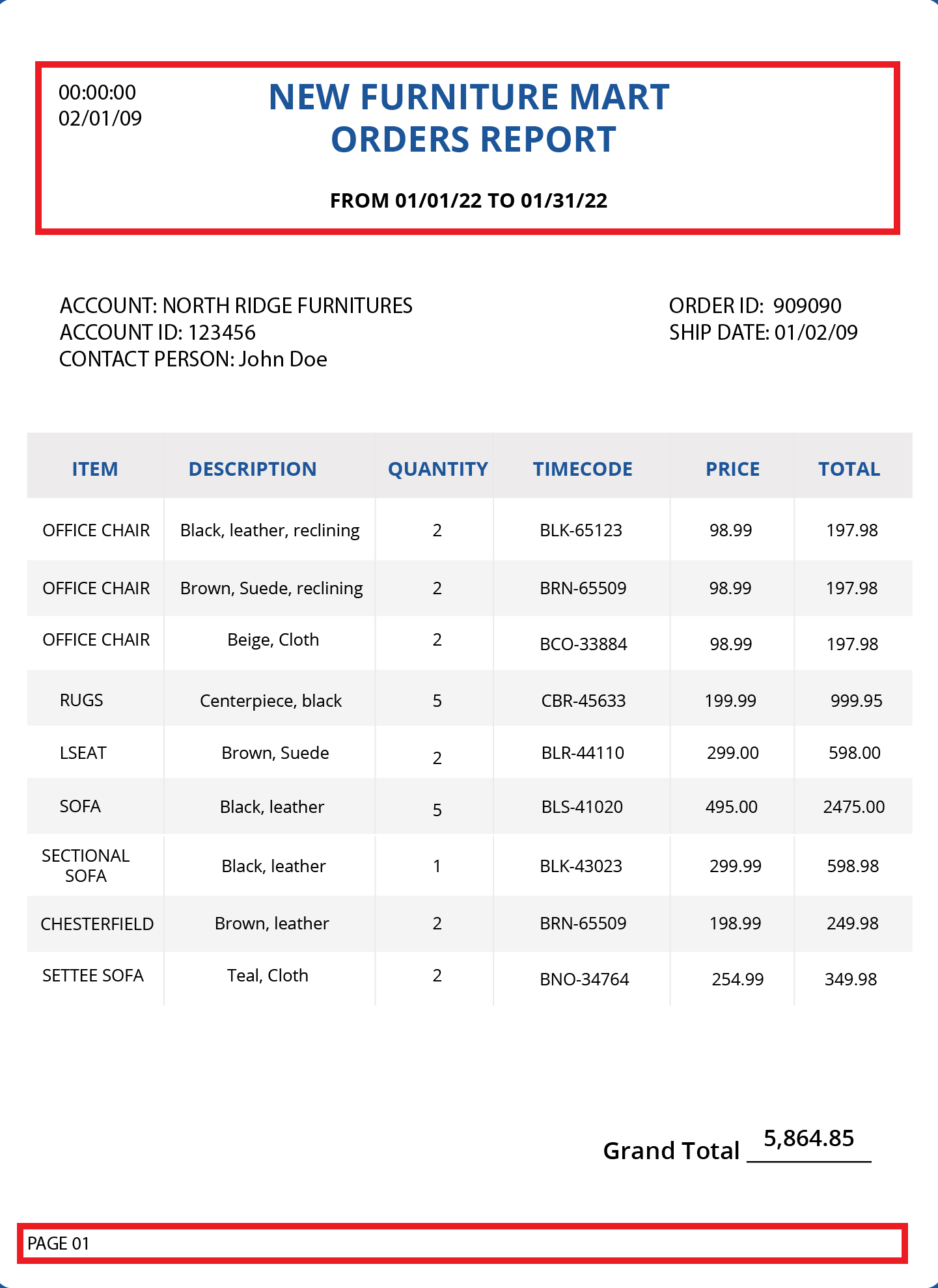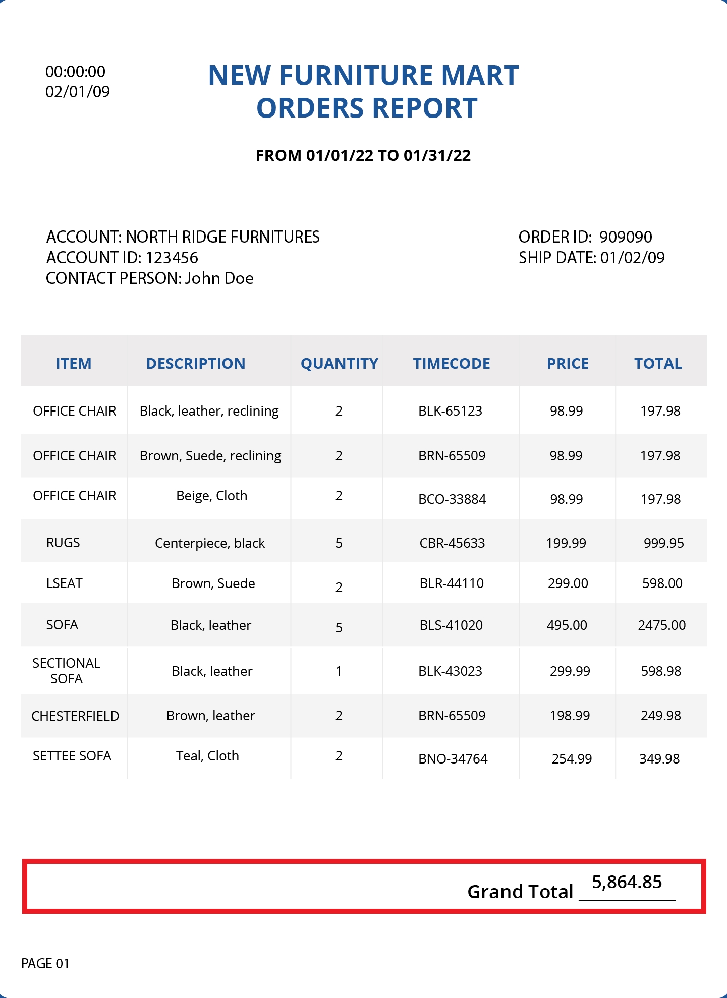 In the page 1 of the Orders Report (shown below), the first 3 lines can be extracted in a header region as they contain information about the time, date, from and title of the report. Moreover, these lines occur on every page of the report.