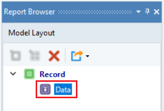 Single-instance data region node has a blue icon in the Model Layout panel.