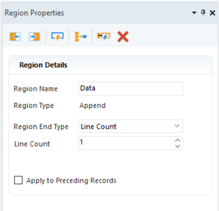 The Region Properties panel also changes to reflect the append region.