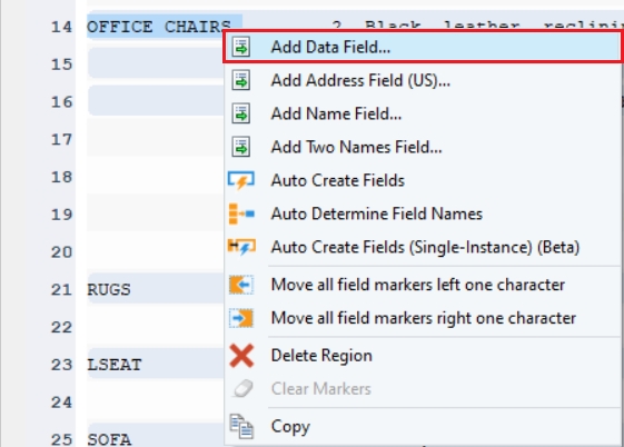 Note: The ITEM column in the first data field contains null values under OFFICE CHAIRS. Astera allows you to use any value from “Value if Null” option in the Field Properties. In this case, we have selected the Use From Previous Record option.