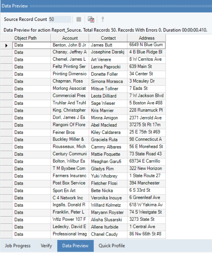 6. You can preview data by clicking on the Preview Data icon placed in the toolbar at the top of the designer window.