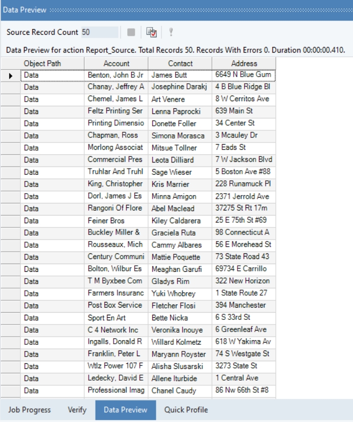 A Data Preview window will open displaying a preview of the extracted data.