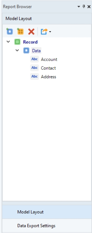 1. Right-click on the Record node under the Model layout panel and select Add Data Region from the context menu.