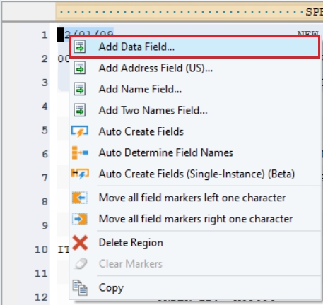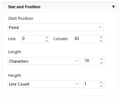 Line/Column - Allows users to define co-ordinates to specify the starting position of the data field.