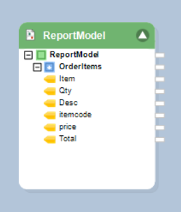 Once the source object has been configured, the Report Source object on the dataflow designer will show the fields with layout according to the report model you have created.
