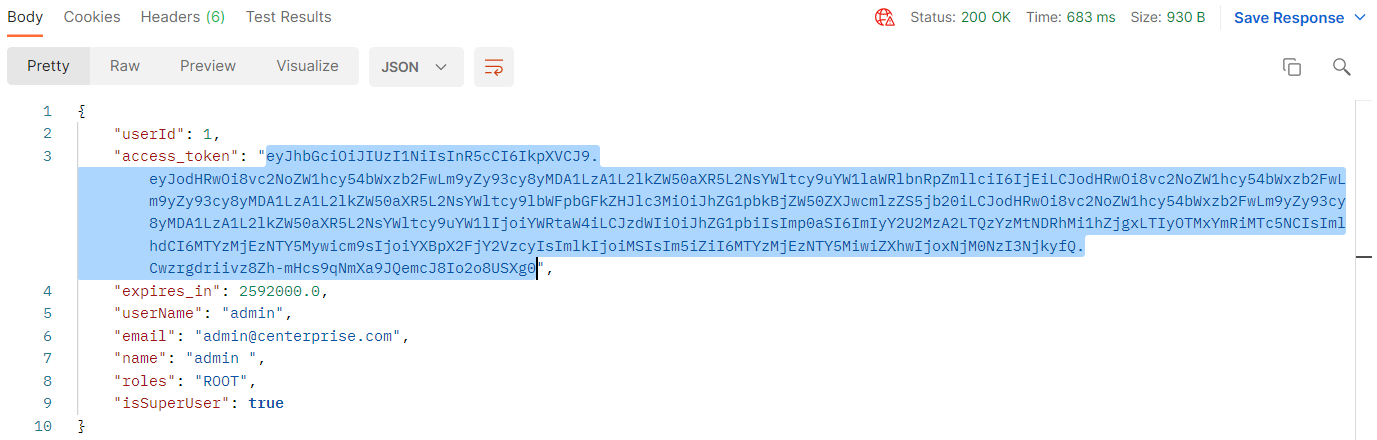 We will make the first API call for logging into the Astera server to generate an access token. Provide the following credentials in the request body and click on Send.