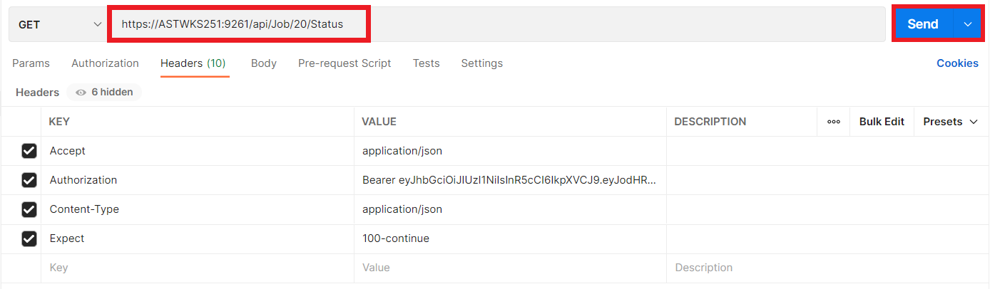 In the third step, we will make a GET call to fetch the job’s status by providing the job ID.