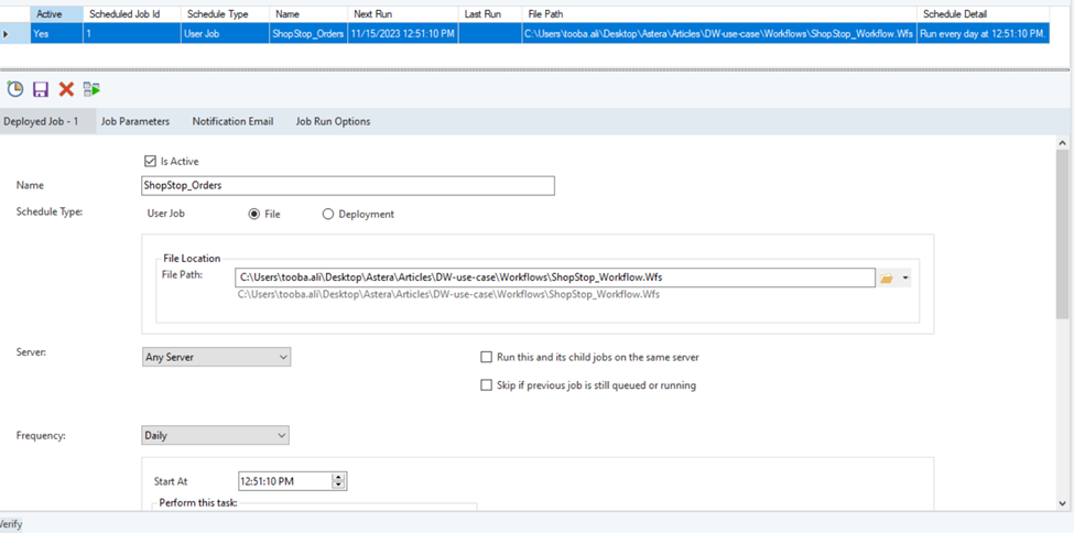 In the Scheduler tab, you can create a new schedule to automate the execution process at a given frequency.