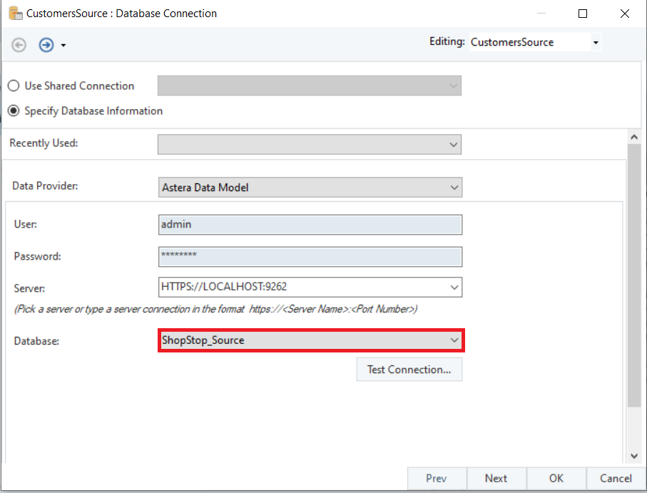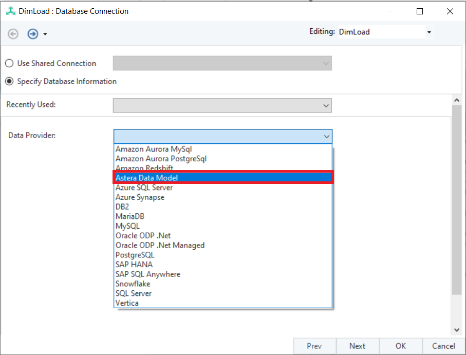 You’ll recall that both models mentioned above were deployed to the server and made available for usage. While configuring the objects in this dataflow, we connected each of them to the relevant model via the Astera Data Model connection in the list of data providers.