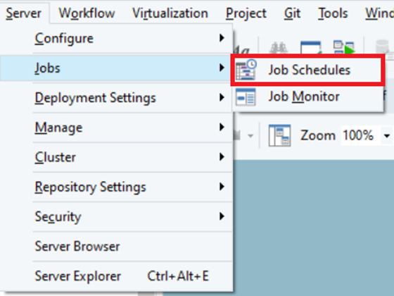 Finally, we’ll automate the process of refreshing this data through the built-in Job Scheduler. To access the job scheduler, go to Server > Jobs > Job Schedules in the main menu.