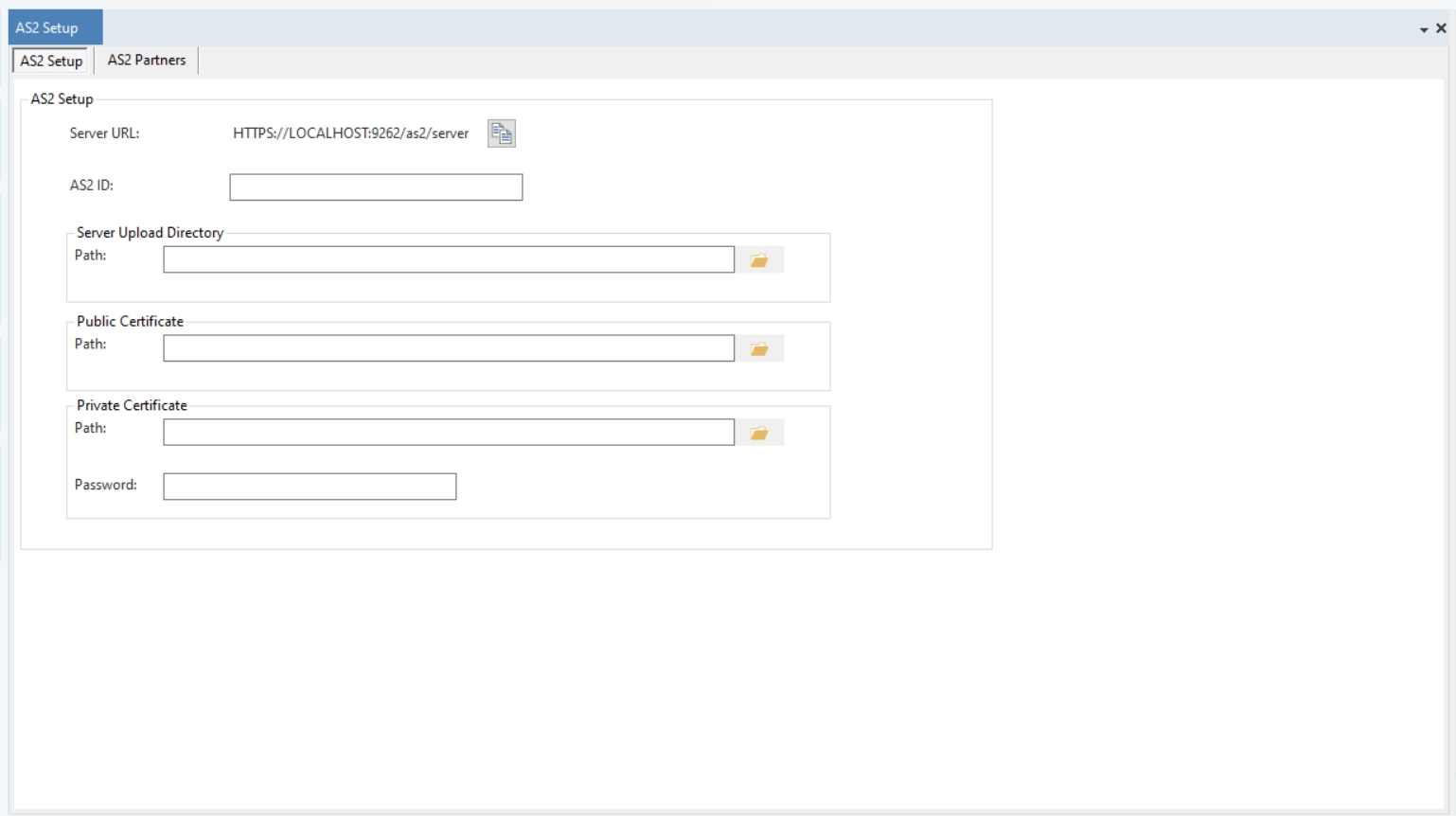 The AS2 setup configuration page will open, as shown below.