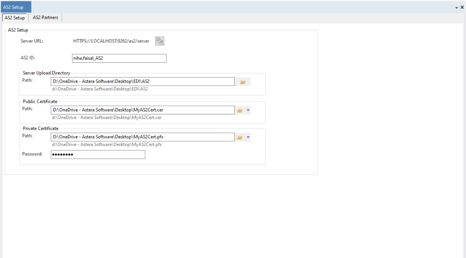 Our AS2 server setup has now been configured. We can now save it and make use of our AS2 service to send and receive EDI files in Astera.