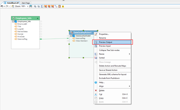 Now let’s look at the preview. Right-click on the *Data Quality Rules* object and select *Preview Output* from the context menu.