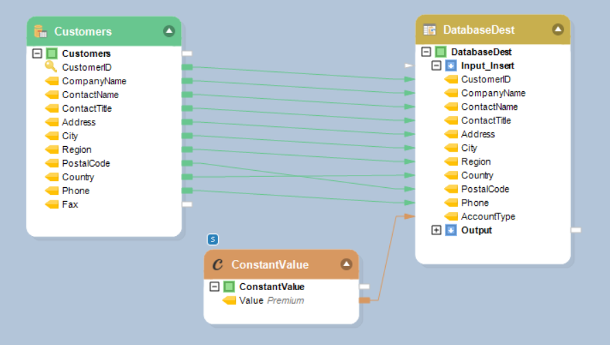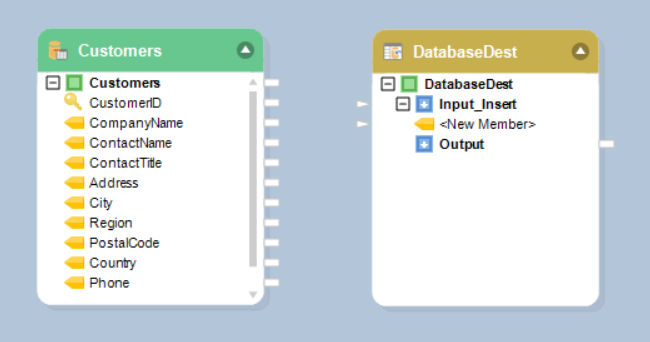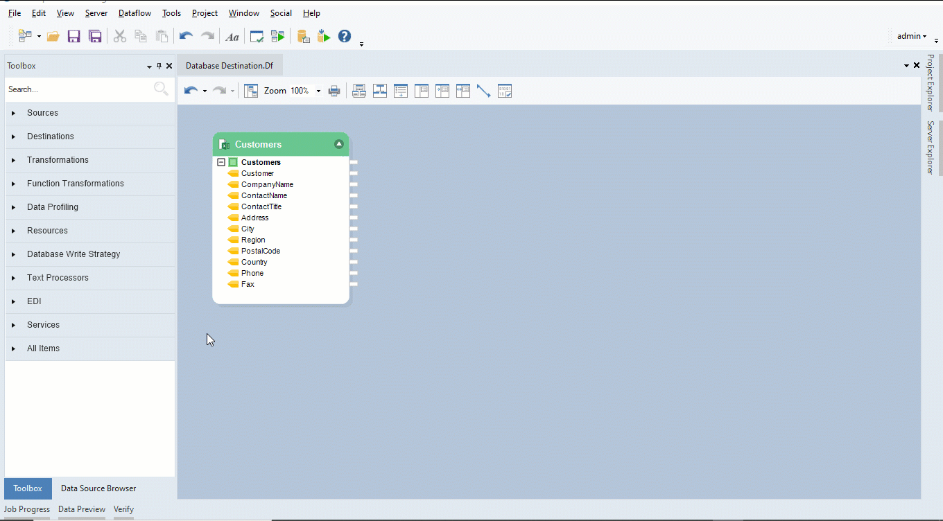 Note: In this case, a Customers sample data coming in from an Excel Workbook Source, will be written to a Database Table Destination.
