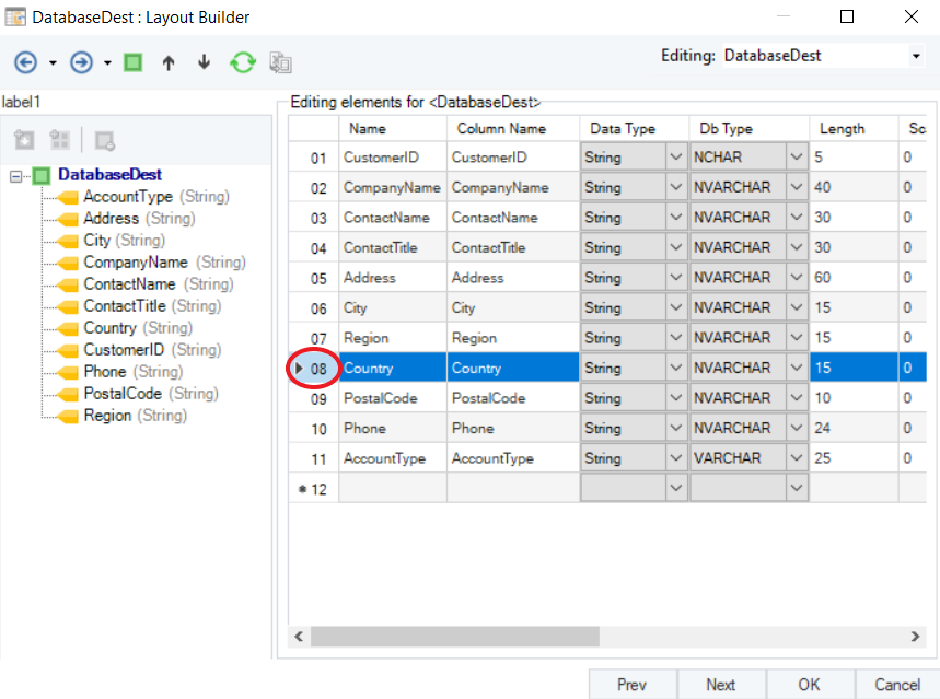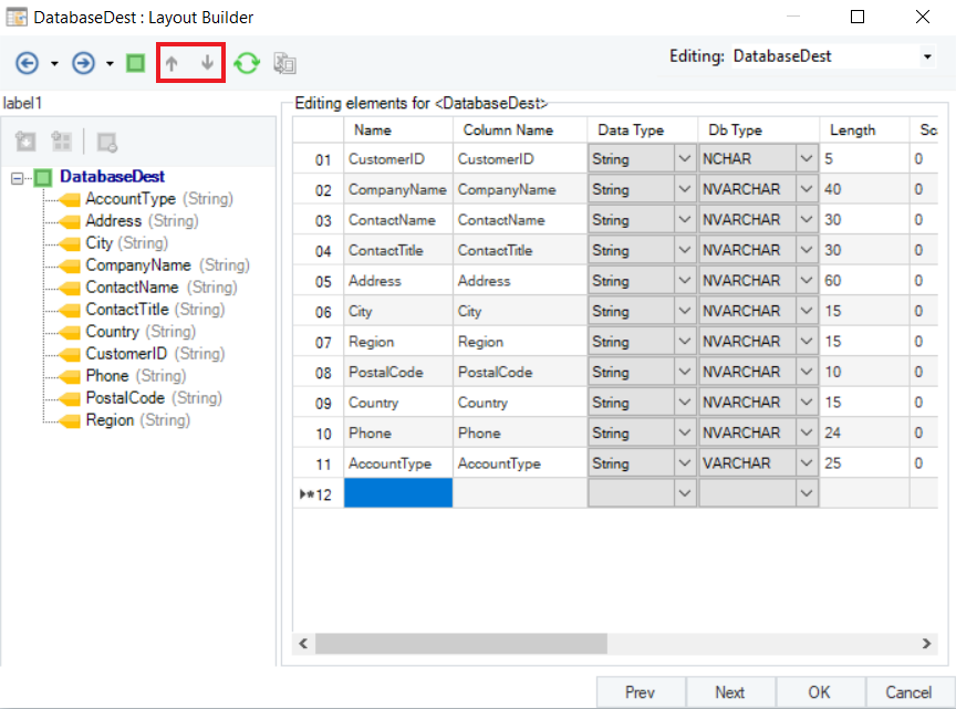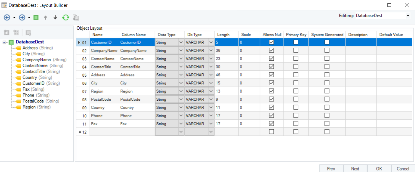 The next window you will see is the Layout Builder. Here, the layout of the database destination file can be modified.