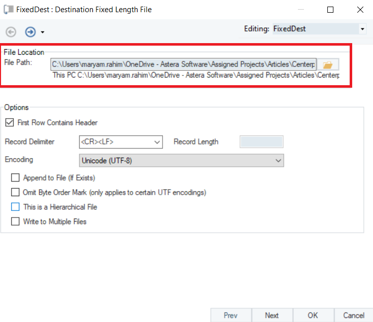 2. Provide the *File Path*. This is where the Fixed-Length File destination file will be saved.