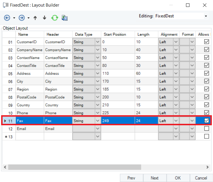 The next window is the *Layout Builder*. On this window, the layout of the Fixed-Length destination file can be modified.