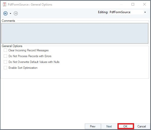 1. Select the *PDF Form Source* object from the Toolbox and drag and drop it onto the dataflow designer.