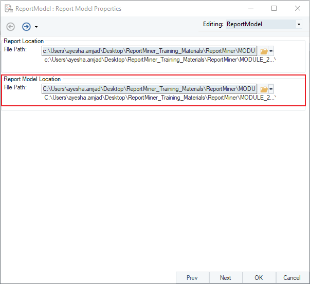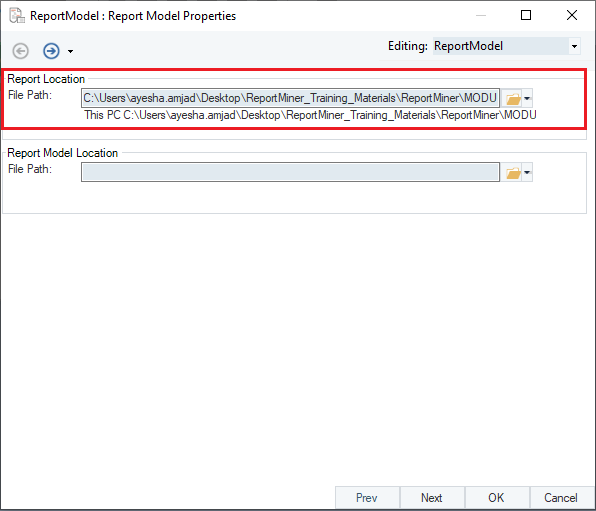2. First, provide the *File Path* of the unstructured file (your report) for which you have created a Report Model.