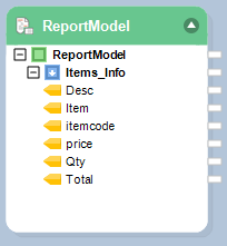 4. Click *OK*, and the fields added in the extraction model will appear inside the *Report Source* object with a sub-node, *Items\_Info*, in our case.