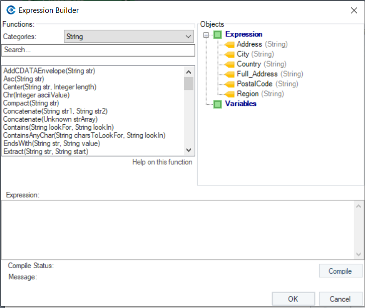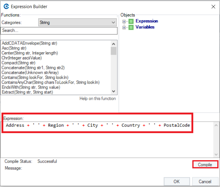 **Note:** Once you’ve built the expression, click on the *Compile* button to check whether or not the expression was compiled successfully. If the *Compile Status* is ‘Successful’, click *OK*.