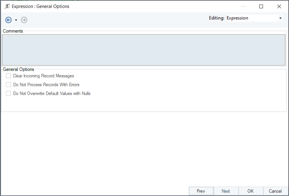 * *General Options* Window: This window shares options common to most objects in the dataflow.
