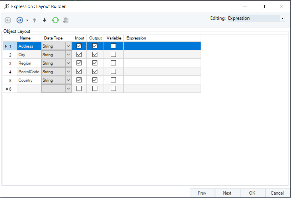 3. Map the fields to be concatenated from the source object to the *Expression* transformation object. In this example, we have mapped the *Address, Region, City, Country,* and *PostalCode* fields.