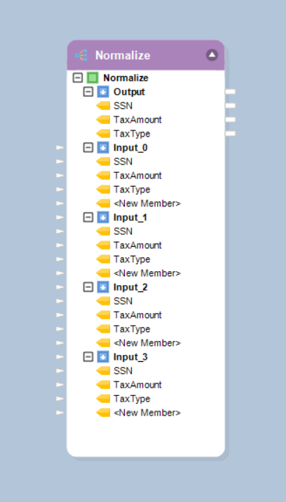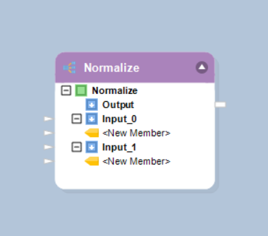 Now that you have configured the *Normalize* object, you will notice that new input nodes have been added to the object based on our selection for the *Number of Mapping Groups* option. Each node contains the layout we specified in the *Layout Builder* window.