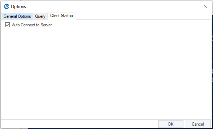 To do that go to *Tools > Options > Client Startup* and select the *Auto Connect to Server* option. On enabling the option, Astera will store the server details you entered previously and will use those details to automatically reconnect to the server every time you run the application.