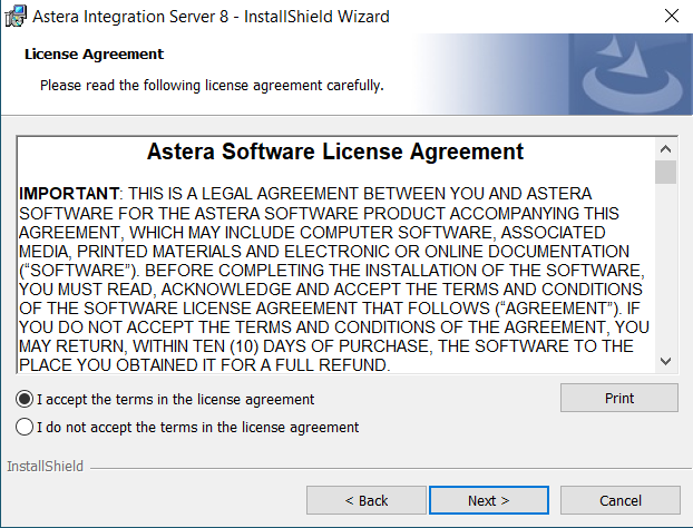 1. Run the *‘AsteraDataIntegrator’* application from the installation package to start the client installation setup.