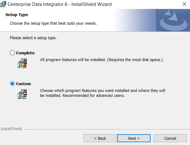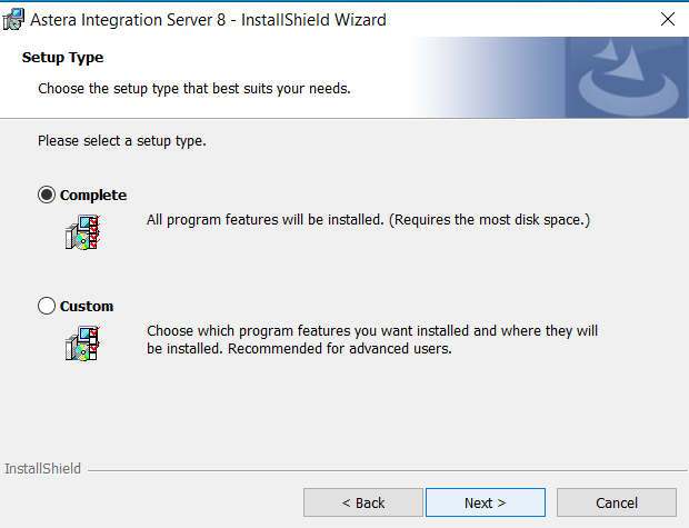 6. Select the type of installation (Complete or Custom) you want to proceed with and click *Next*.