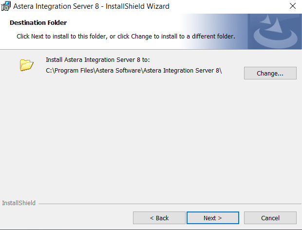 5. You can specify/change the folder for installing the Astera server on the next screen. By default, it is installed in *Program Files > Astera Software > Astera Integration Server 8*. Click *Next* to continue.