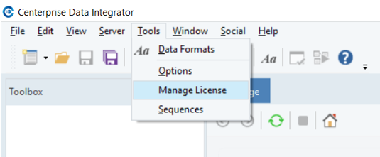 1. Go to *Tools > Manage License*. Or you can access the *License Management* window from the *Server Explorer*.